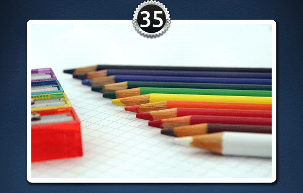- 35 : papier + taille crayon + crayons